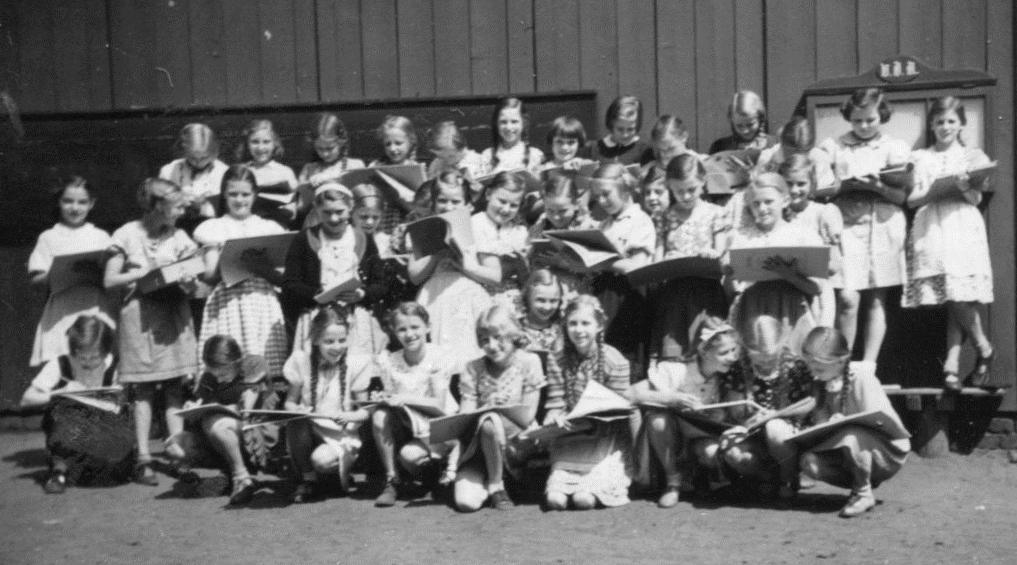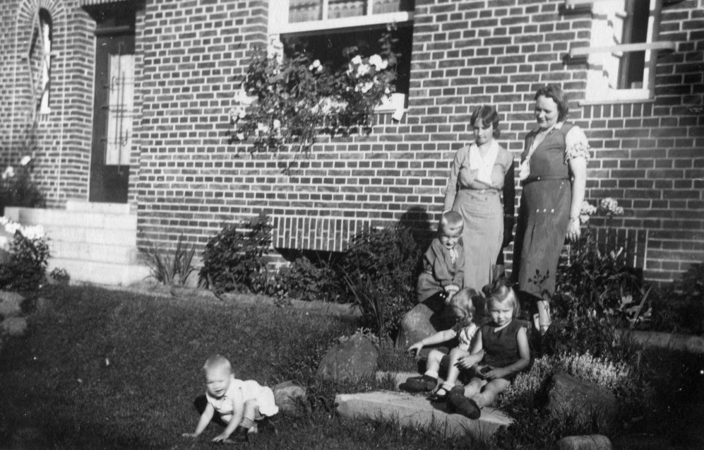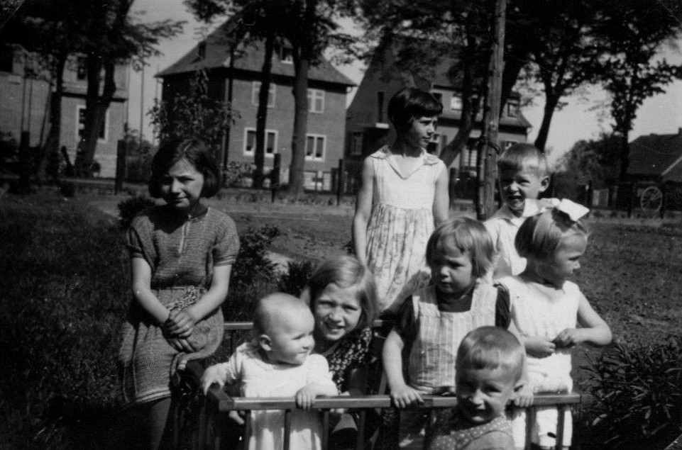 1932 mit Nachbarskindern: Hildegard unten links, Elisabeth ganz rechts, Rudolf