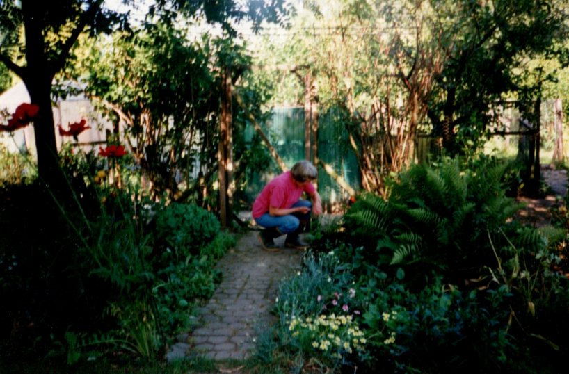 ihre hingebungsvolle Liebe bei der Pflege ihrer Blumen, Bäumen... und Tomaten