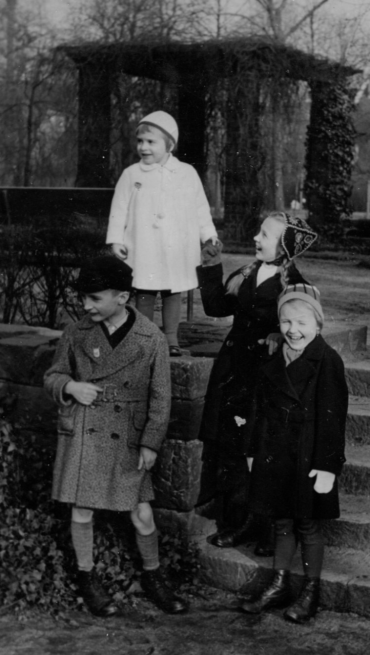 1934 in Coesfeld: Hildegard, Rudolf, Elisabeth, Dodo (Nachbarskind)
