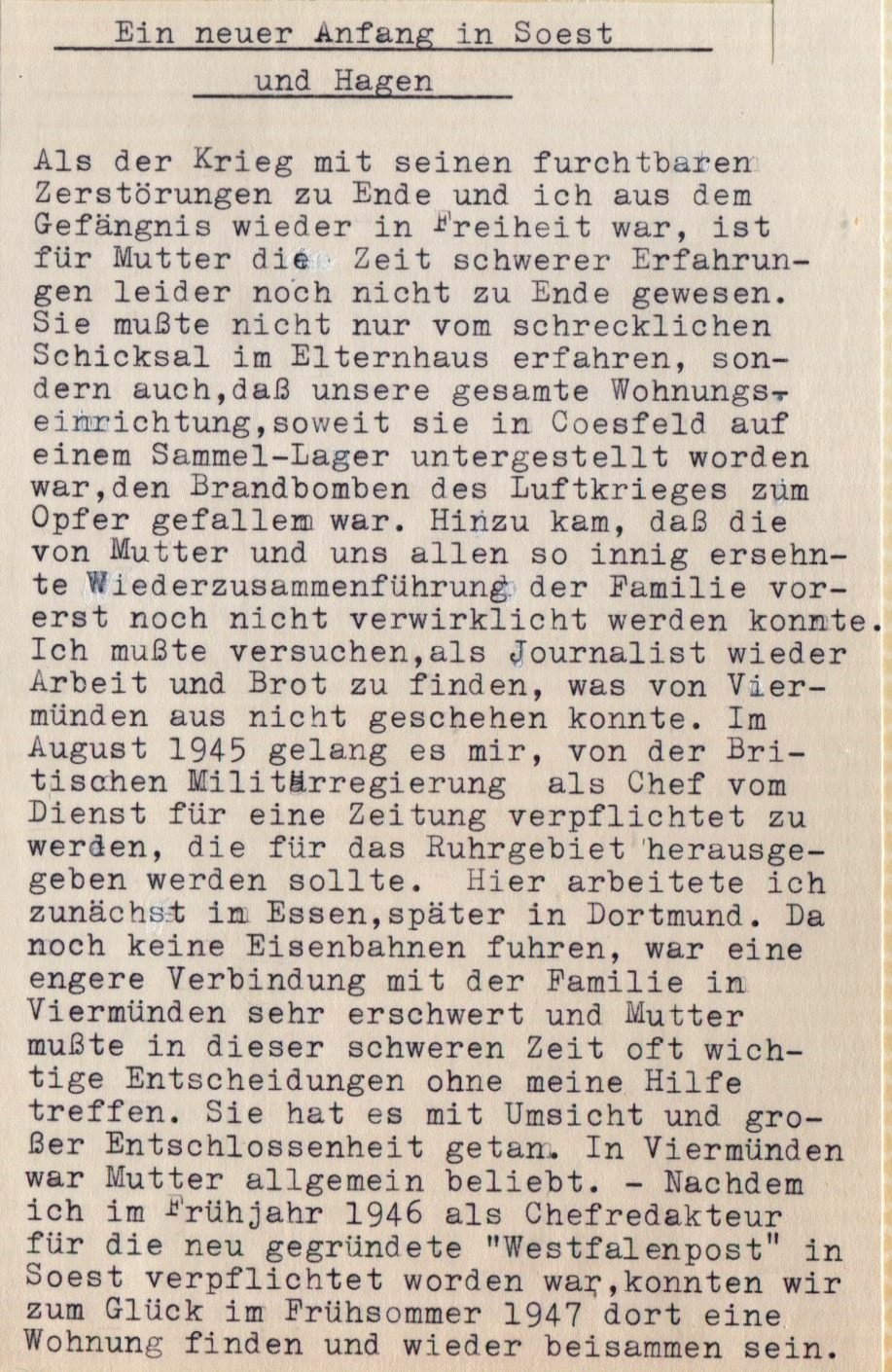 Das will was heißen. Seine Erinnerungen hat er in einem Buch mit einer Schreibmaschine aufgeschrieben, dem ich in den uns betreffenden Auszügen durch Digitalisierung zur Auferstehung verhelfen will.