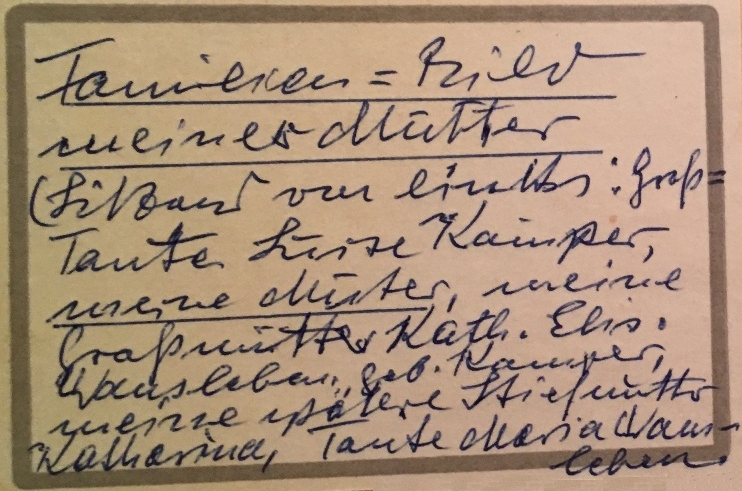 Heinrichs Schwester Elisabeth (links) ist aber auch die Mutter von Vater Edmund, also Rudolfs, Hildegards und Gerhards Urgroßmutter. Sehr verwirrend!